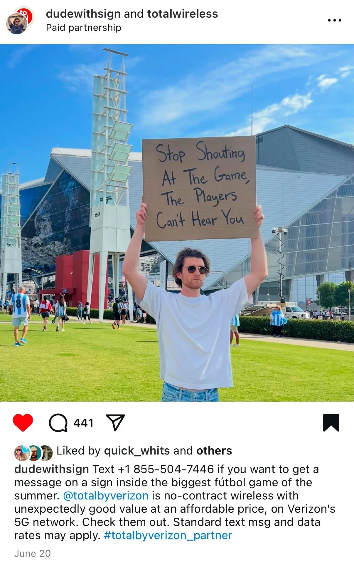 We launched our campaign during the opening match between Argentina and Canada with the help of creator @dudewithsign and soccer legend Rafael Marquez.